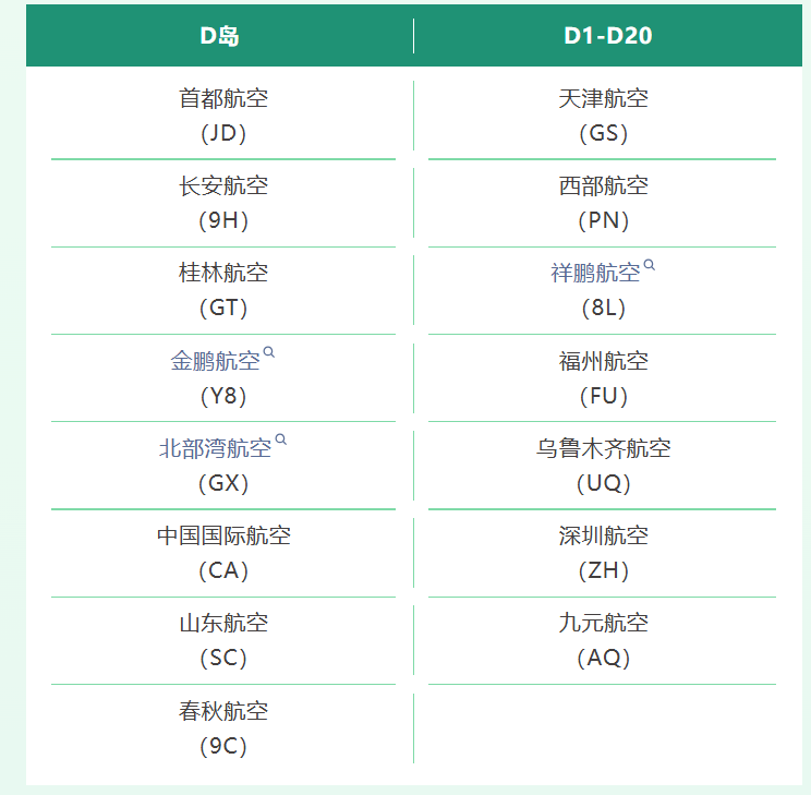 因三亚机场值机B岛升级改造完成,为合理利用各值机区域资源,提高旅客办理乘机手续效率,三亚机场将从2025年12月3日第一个出港航班起,对各航空公司国内值机区域进行调整,调整后各航空公司值机区域分布如下: